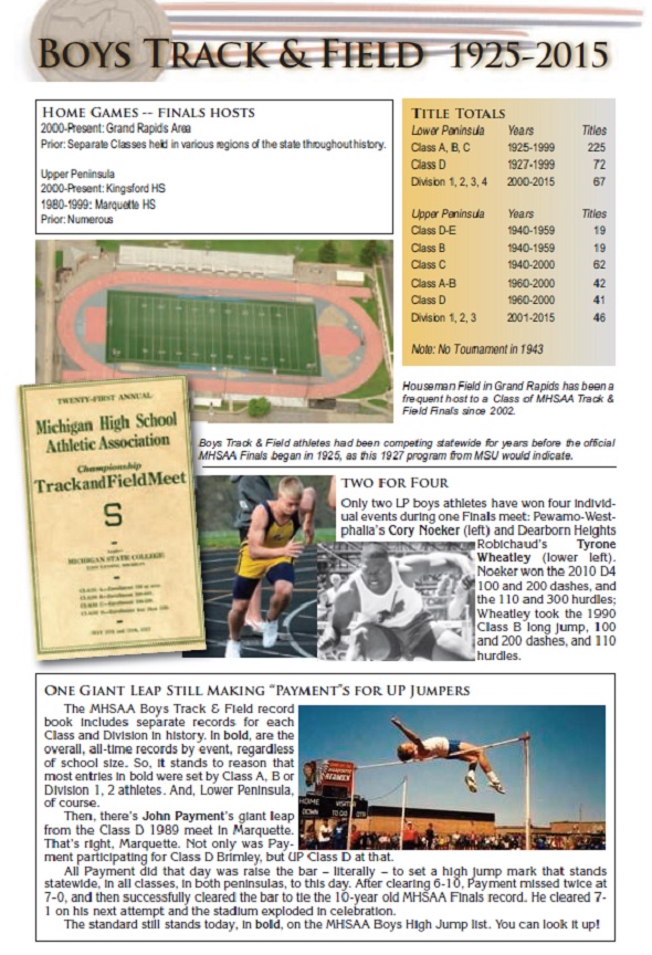 The MHSAA Boys Track and Field Finals are among a handful of events that trace their beginnings to the first school year of the association, 1924-25.