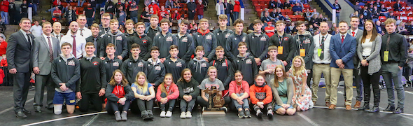 Sophomore Logan Badge won his second individual championship and finished a 37-0 run with the title at 189. Junior Brayden Randolph (171) and sophomore Kent McCombs (145) were individual runners-up at their weights, Randolph for the second-straight season. Freshman Connor Busz (third at 103), sophomore Chase Packard (eighth at 112), sophomore George Ames (third at 135), junior Spencer Konz (third at 160), junior Jack Voll (sixth at 215) and junior Will Felts (sixth at 285) also placed.