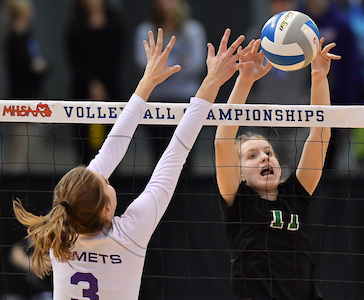 Last year’s title was the first since 2001 for the Hornets (40-9-6). But even after losing six seniors, this year’s group came in with experience winning on the Kellogg floor led by junior Anna Smith. She was dominant for the second straight year, with 22 kills, 13 digs and four aces.