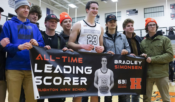 The performance topped Houghton’s school record of 60 points, set by Gary Lange in 1970. The total ranks 14th across the entire state for single game points in a contest, and tied Simonsen for sixth highest above the bridge. There, the mark equaled the top single-game output posted by Stephenson’s Mel Peterson, considered by many the greatest cager ever to come out of the Upper Peninsula.