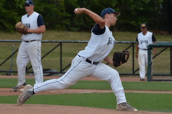 PHOTOS: (Top) Lakeshore pitcher Connor Brawley makes his move toward the plate during Thursday's Semifinals. (Middle) Bay City John Glenn's Brad Mularz delivers a pitch.
