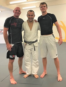 PHOTOS: (Top) Columbia Central’s Khol Partridge unleashes a pass this past fall. (Middle) Partridge, far right, with father Rodney (far left) and renowned Brazilian Jiu-Jitsu competitor Marcelo Garcia. (Photos courtesy of the Partridge family.)