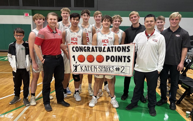 Needing just two points to reach his career milestone, Kaden Sparks scored a game-high 27 points in a 57-46 loss by Howardsville Christian to Division 2 Edwardsburg in the Tri-State Holiday Classic on Dec. 14 at Southwestern Michigan College.