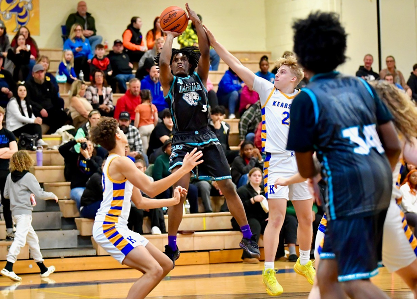 PHOTOS (Top) Jayce Branson (3) gets to the rim during East Lansing's 52-29 win over DeWitt last week. (Middle) Flint Southwestern and Kearsley face off Jan. 5. (Top photo by Max McCallister; middle photo by Terry Lyons.)