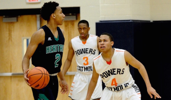 PHOTO: Saginaw Heritage, here against Flint Powers Catholic, dealt Mount Pleasant its first loss of the season last week. (Photo by Terry Lyons.)