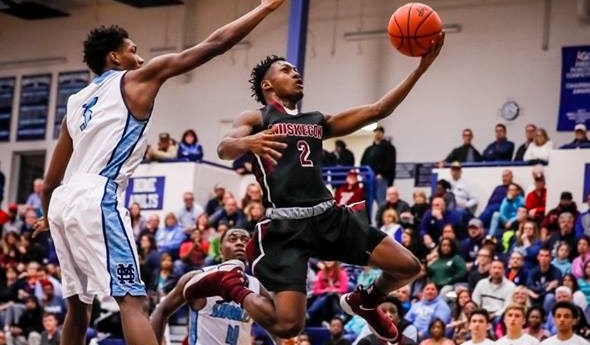 PHOTO: Muskegon, here against Muskegon Mona Shores in a 63-49 win on Jan. 26, takes on Ypsilanti Community in one of this week’s most intriguing matchups. (Photo by Tim Reilly.)
