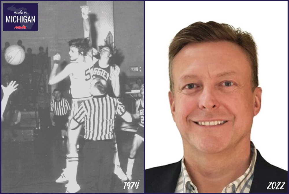 PHOTOS (Top) At left, Len Lillard as the standout on the Ann Arbor St. Thomas boys basketball team in 1974; at right, Lillard today as a father of three and successful investment banker. (Action photo courtesy of Doug Donnelly, current photo courtesy of Glaucon Capital Partners).