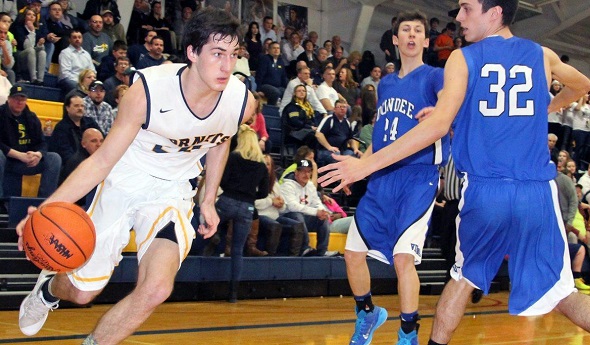 Senior Carson Kiefer helped lead the way for Cheboygan's varsity at Kingsley. He scored 12 points, with two 3-pointers. Kiefer credits Hancock for helping him improve his confidence on the court.