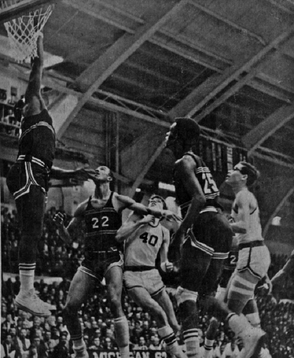 Rouge dominated the 1969 Final led by 6-foot-4, 250-pound forward Dwayne Johnson (reaching for the rim in bottom photo), who scored 23 points. Teammate Rod Wimphrey added 16 points, but more importantly held Hackett's Bob Calligton to nine. Calligton had scored 31 points in Hackett's Semifinal win one night earlier.