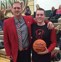 PHOTOS: (Top) East Jordan's Jordan Weber unloads a shot during a game last season; he set his school's career scoring record last week against Mancelona. (Middle) Weber, right, poses with his dad and coach Darrin Weber. (Photos courtesy of the Weber family.)
