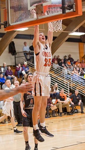 Senior Carson Kiefer helped lead the way for Cheboygan's varsity at Kingsley. He scored 12 points, with two 3-pointers. Kiefer credits Hancock for helping him improve his confidence on the court.