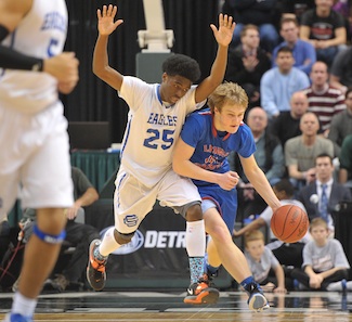 Junior guard Bakari Evelyn scored five of his game-high 28 points after teammates Lindsay Hunter IV and Damarco White fouled out in the fourth quarter, and 2013 championship game standout Marlo Brown also scored during the same stretch as Southfield Christian claimed its third straight MHSAA title with a 63-61 nail-biter over Adrian Lenawee Christian.
