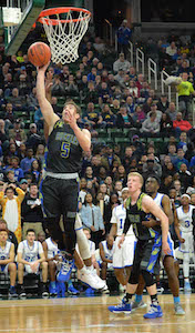 PHOTOS: (Top) Southfield Christian’s Harlond Beverly works to get past Buckley’s Brock Beeman during the Class D championship game. (Middle) The Bears’ Joey Weber goes up for a shot at the Breslin Center.