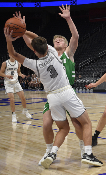 Union City overcame an early 15-4 deficit to gain a sizable halftime lead over Mendon. The Chargers dominated the boards and were able to shut the Hornets down defensively during the second half in pulling out the win.