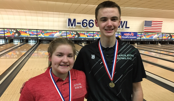 Baldwin, a Napoleon senior, and Johnson, a Vandercook Lake senior, won their MHSAA Finals titles Saturday at M-66 Bowl in Battle Creek, becoming the first Cascades Conference duo to win titles in the same season since Adam LaRoe of Napoleon and Malloree Ambs of Vandercook Lake claimed 2013 crowns.