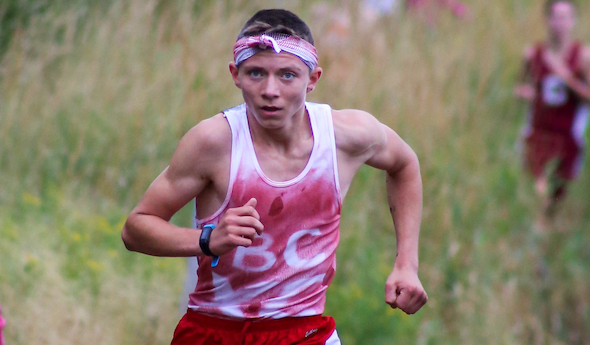 PHOTO: Benzie Central freshman Hunter Jones breaks away on the way to winning the Charlevoix Classic by 32 seconds on Sept. 7. (Photo by Sports in Motion.)