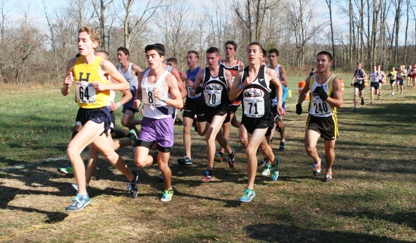 PHOTO: Milford's Brian Kettle (70) runs amid a sizable pack during the Lower Peninsula Division 1 Final. (Click to see more from RunMichigan.com.)