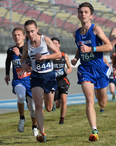 PHOTOS Potter’s House’s Lezawe Osterink approaches the finish of the Division 4 Final at Michigan International Speedway. (Middle) Hillsdale Academy’s Thomas Holm (844) and Adrian Lenawee Christian’s Grant Long (764) push down the final stretch. (Click for more from RunMichigan.com.)
