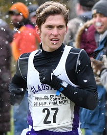 Gladstone senior Adam Bruce won the 3.1-mile race in 17 minutes, 5.6 seconds at Pictured Rocks Golf Club. He was followed by Houghton junior Joe Wood (17:35.1), Gladstone senior Jake Strasler (17:40.1), Sault junior Kaaleb Ranta (17:47.8) and Gladstone freshman Giovanni Mathews (17:48).