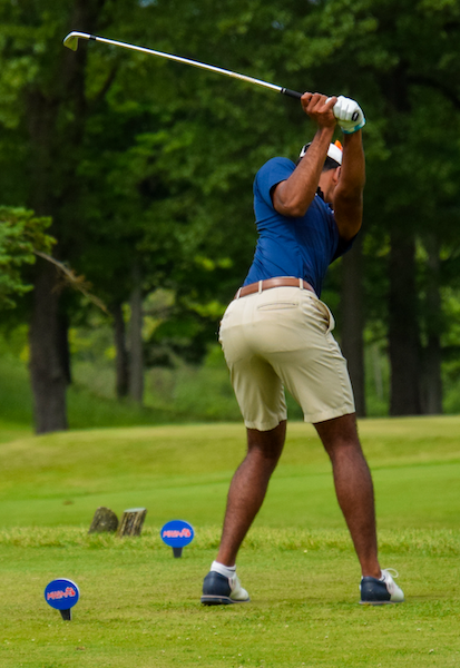 PHOTOS (Top) Detroit Catholic Central’s Julian Menser follows an approach shot during Saturday’s second round. (Middle) Ann Arbor Skyline’s Vibhav Alokam tees off. (Click for more from High School Sports Scene.)