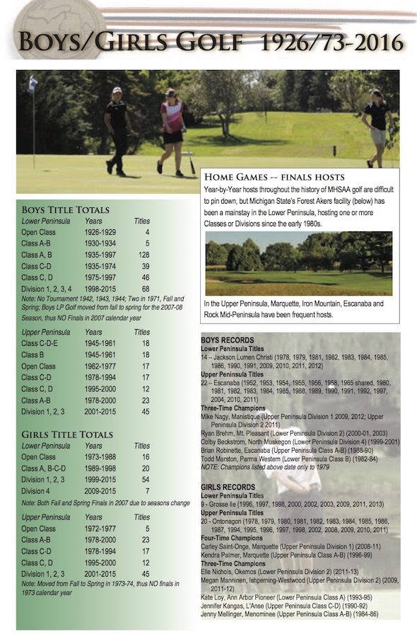 Today's "Through the Years" takes a look at both the MHSAA boys and girls golf tournaments; the boys started in 1926, while the girls teed off for the first time in 1973.