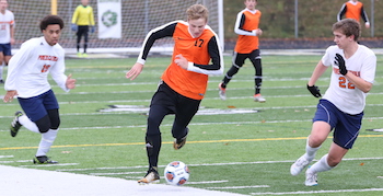 PHOTOS: (Top) Flint Powers’ Garret Delamielleure works to gain possession during Saturday’s Division 3 Final. (Middle) Ludington’s Caleb Schoon (17) pushes the ball upfield while Chargers chase.