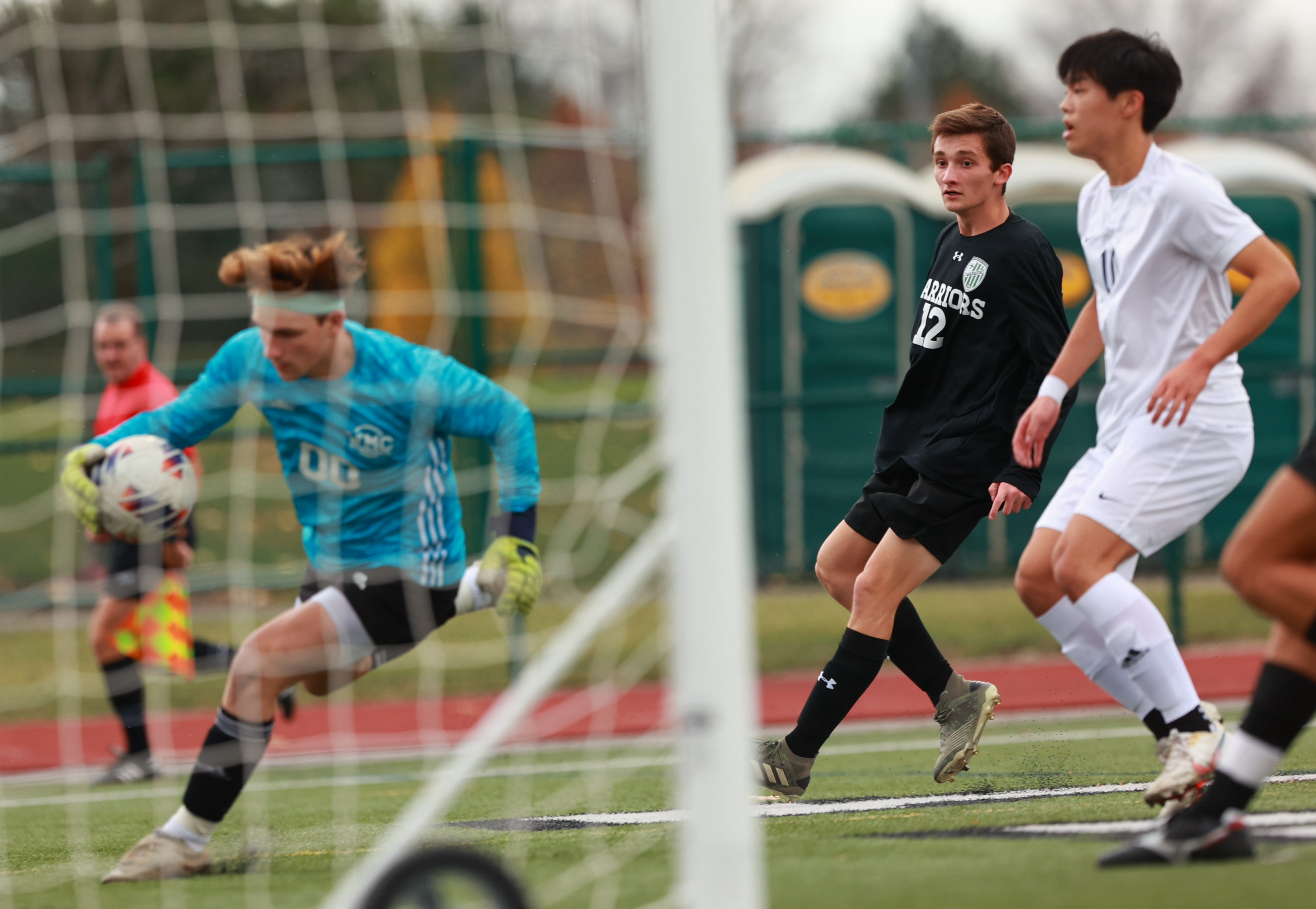 With 14 minutes, 50 seconds left in Saturday’s Division 4 championship game, he planted the rebound off a free kick from teammate Ashton Leffring into the Ann Arbor Greenhills net for the game’s lone goal as the Warriors (16-8-2) claimed their eighth MHSAA Finals title with a 1-0 victory at Novi High School.