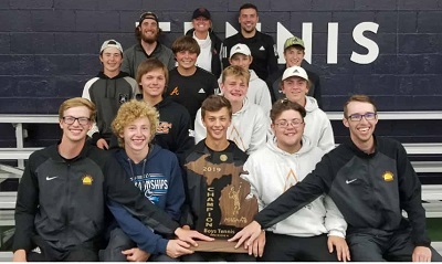 Tyler Aldrich – Jen’s son – was a Regional champ at No. 1 and won two Finals matches while entering unseeded. No. 2 singles Tim Lyon also won a match at the Finals, while Owen Clearwater and Walker Michaels at No. 2 doubles and Chase Williams and David Roark at No. 4 also made semifinals. Aldrich, Eli Festerling, Clearwater/Michaels, Noah Festerling/Groth and Williams/Roark were Regional champs to pace that team title victory.