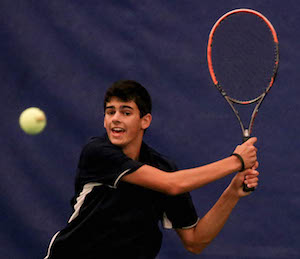 PHOTO: (Top) Bloomfield Hills Cranbrook Kingswood's Lucas Bosch sends back a volley during Saturday's Division 3 Finals. (Middle) Detroit Country Day's Nikolas Gruskin returns a shot, also at No. 1 singles. (Click to see more from HighSchoolSportsScene.com.)