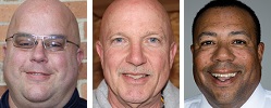 PHOTOS: (Top) Kalamazoo Loy Norrix boys tennis coach Daniel Henry sends back a volley during a practice this fall. (2) Daniel Henry. (3) Daniel Henry and his mother Gina Rickman. (4) From left: Loy Norrix athletic director Andrew Laboe, Portage Central coach Peter Militzer, Kalamazoo College coach Mark Riley. (Action and top Henry photos by Pam Shebest. Henry and Rickman photo courtesy of Daniel Henry. Riley photo courtesy of Kalamazoo College.)