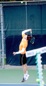 PHOTOS: (Top) Novi poses with a championship trophy after winning a share of the Lower Peninsula Division 1 title, its second straight. (Middle) Bloomfield Hills also won a share of the title, its first since the school was created from a merger of Lahser and Andover. (Below) Northville’s Connor Johnston won No. 1 singles after finishing runner-up the last two seasons. (Click for more from HighSchoolSportsScene.com.)