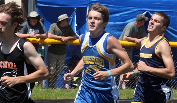 PHOTO: Kingsford's Lucas Jennings works to move up in the pack during the 1,600 at Saturday's U.P. Division 1 Final. (Click to see more from RunMichigan.com.)