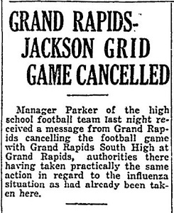 Globally, the Spanish Flu pandemic arrived in three waves, one in the spring, one in the fall of 1918, and a third arriving in the winter of 1919 and ending in the spring. It, too, would impact high school and college athletics in Michigan and beyond, as countless football games across the nation were cancelled in an attempt to help reduce the spread of the disease.