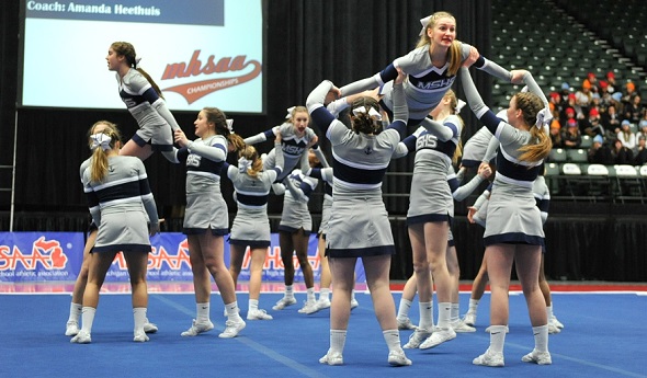 Outlook: Hoffman, a member of the first cheer teams at the school before graduating in 2003, returned to coach in 2014 after then-coach Danielle Nash was diagnosed with brain cancer. Nash died in December of that year, and the team went on to reach Regionals for the first time – and now earn its first MHSAA Finals berth. The Rockets’ top three scores have come during their last three meets, including in a second-place finish to Mona Shores at the Greater Muskegon city competition.