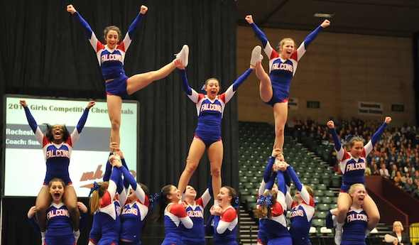 GRAND RAPIDS – Rochester’s run to a 14th MHSAA competitive cheer championship wasn’t as smooth as the build up to number 13 a year ago.