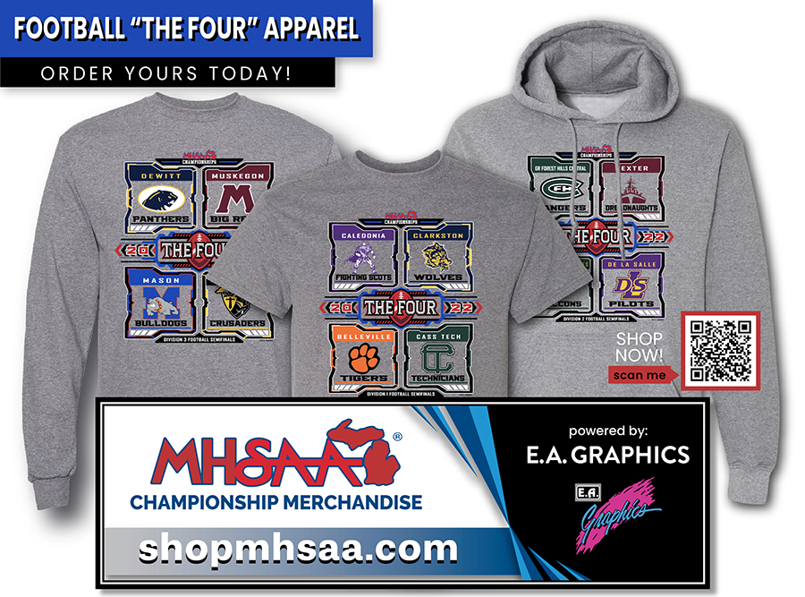 MHSAA Championship Shirts are available from the MHSAA’s exclusive provider of championship merchandise, EA Graphics (Sterling Heights, MI).