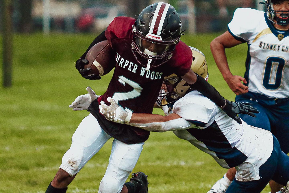 PHOTO Harper Woods pulled away from Rochester Hills Stoney Creek 34-21 in Week 1. (Photo by Olivia B. Photography.)