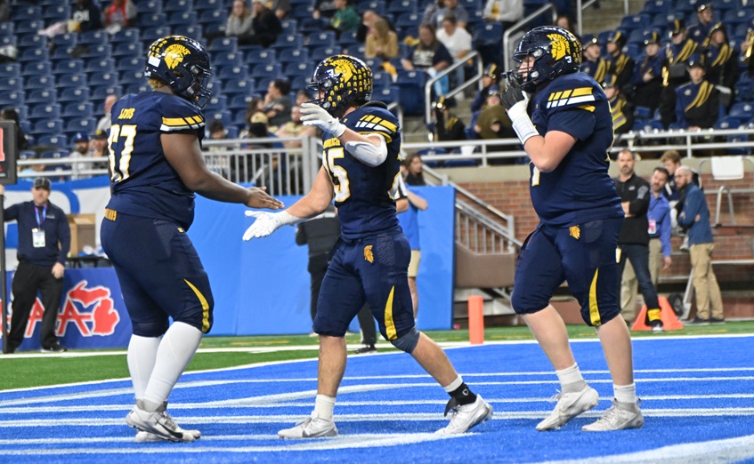 Orchard Lake St. Mary’s also won its first championship since 2016 with a mostly second-half burst after trailing 13-7 until the final minutes of the second quarter. Darrin Jones and Bryson Williams both ran for more than 100 yards and a pair of touchdowns as the Eaglets also shut down a Byron Center offense that averaged nearly 40 points per game entering championship weekend.
