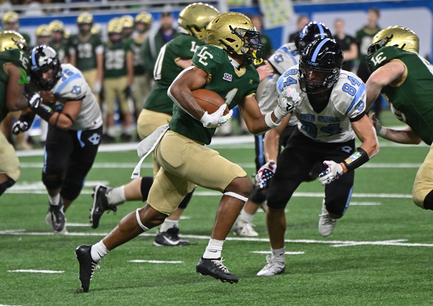 Lumen Christi’s record-setting win came on a record-setting performance by running back Kadale Williams, who ended up with a combined 590 yards and eight rushing touchdowns over his last two Finals appearances after also carrying the ball once in the Titans’ 2022 championship game. Lumen’s title was its third-straight with the first two of this string coming in Division 7