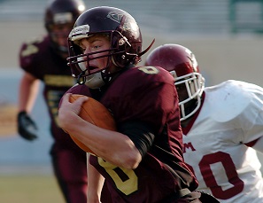 Still, the Big Reds were impressive. Led by quarterback Elan Banks, who was starting his first varsity game, and the one-two punch of Jason Hannett and Anthony Davis in the backfield, the Big Reds rolled to an impressive 35-0 win. The Crusaders had difficulty adjusting to Muskegon’s quick no-huddle option offense. Will Gardner highlighted the day with a 91-yard touchdown on a kickoff return.