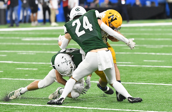 “Our gameplan was really similar from the first half to the second half, but you have to give Negaunee a lot of credit,” West Catholic coach Landon Grove said. “They did a really good job. They slowed the game down. They ate up a lot of clock. That’s credit to them. They got us out of rhythm, and they kind of forced our hand a little bit by not letting us have the football.”
