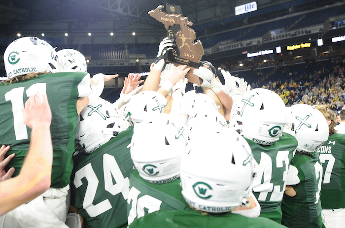 At the start of the postgame press conference following his team’s 42-14 loss to Grand Rapids West Catholic in the Division 5 championship game Nov. 30, Fox tried to introduce several members of a historic senior class.