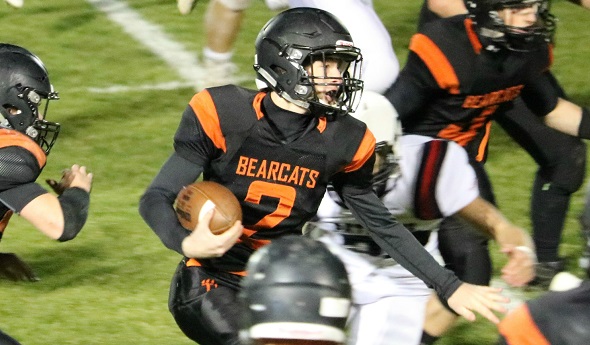 PHOTOS: (Top) Ubly's Casey Sweeney breaks through a pack against Unionville-Sebewaing this season. (Middle) Jonathan Brandel carries the ball for the Bearcats. (Photos courtesy of the Ubly yearbook staff.)