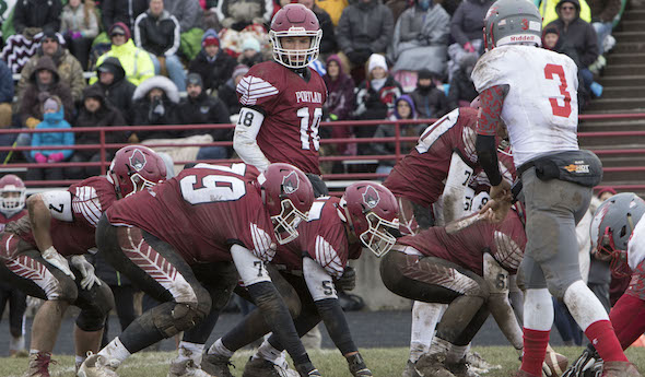 PHOTO: Portland's offense lines up during last week's Division 5 Regional Final win over Frankenmuth. (Click to see more from HighSchoolSportsScene.com.)