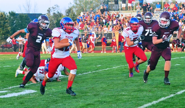 PHOTO: Mason opened with a 56-30 win over Okemos after falling to the rival Chieftains 28-14 a year ago.