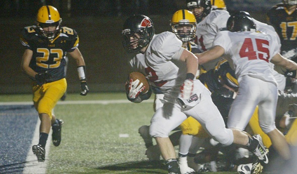 PHOTO: Lowell charges toward the end zone during its 30-25 come-from-behind win over East Grand Rapids on Friday. (Click to see more from HighSchoolSportsScene.com).