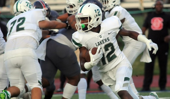 PHOTO: West Bloomfield's JaQuan Wiggins follows his blocks during Friday's win over Southfield Arts & Technology. (Photo courtesy of C&G Newspapers.)