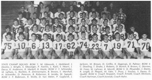 “We were a very balanced team with lots of very good players, but no great ones,” recalled Terry Newton, a first team all-state choice at center in 1968. “We were kind of unheralded with a very tough defense.”