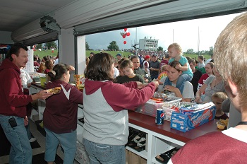 PHOTOS: (Top) Grand Ledge players man the sideline during a home game. (Top middle) The St. Johns' marching band takes the field. (Middle) Walled Lake Western cheerleaders run their flag around the stadium. (Middle below) Watervliet's concession stand feeds the crowd. (Below) Menominee's game provides the true scholastic vibe, complete with school buses parked in the background. (File photos.)