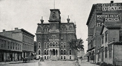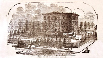 PHOTOS: (Top) The Detroit Free Press included brief coverage of the first "reported" game on Oct. 28, 1888. (Middle) When Michigan’s state government moved from Detroit to Lansing in 1847, the old Capitol building was re-opened as the Detroit’s first city high school in 1863. To better accommodate Detroit’s growing population, the old two-story structure was remodeled into a four-story building, unrecognizable to most. The school served the city well until January 1893, when it burned to the ground. (Below) Erected in 1856 at the cost of $27,000, Ann Arbor High School at State and Huron (now site of the North Quad of the University of Michigan) was destroyed by fire in 1904. (Photos courtesy of Ron Pesch.)